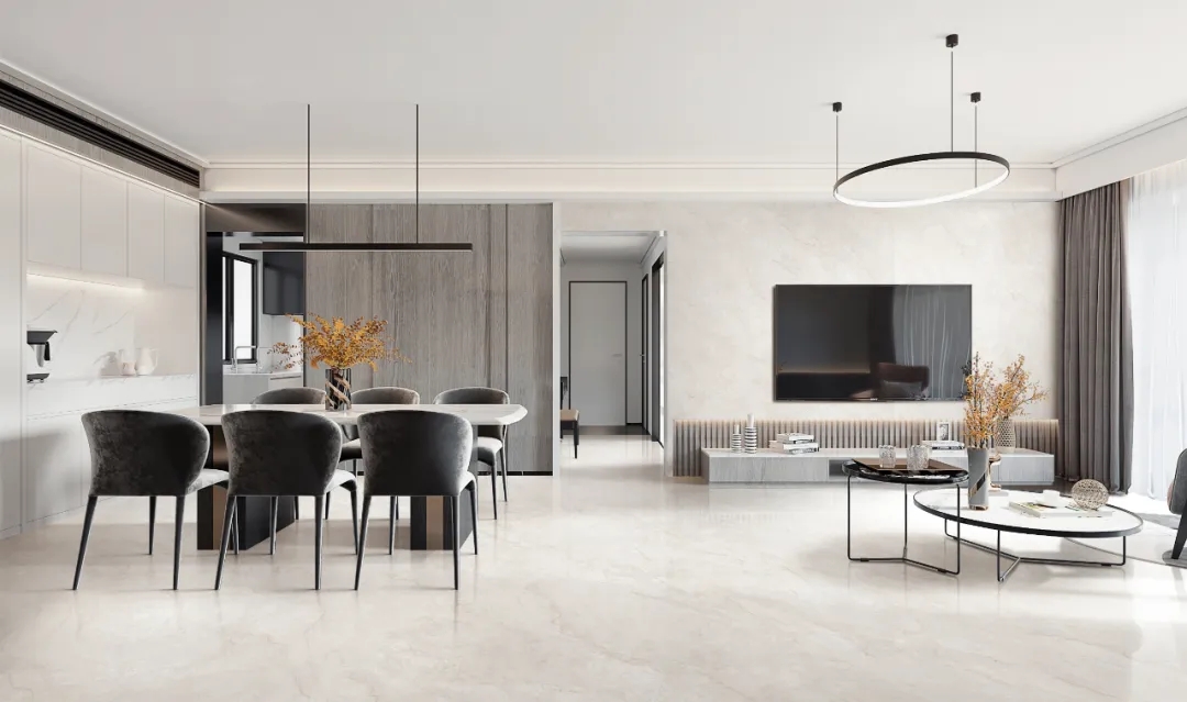 靈感源自意大利玉石般珍貴大理石,在皓白的雪花上勾勒寫意的紋理,以灰白金色調為主,紋理流動交織,細膩且通透。將浪漫主義的情懷和藝術的韻味表現得酣暢淋漓,賦予了空間無盡的想象與深度。